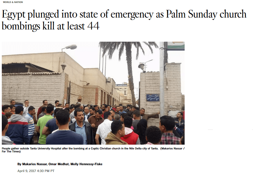 Egypt plunged into state of emergency as Palm Sunday church bombings kill at least 44
