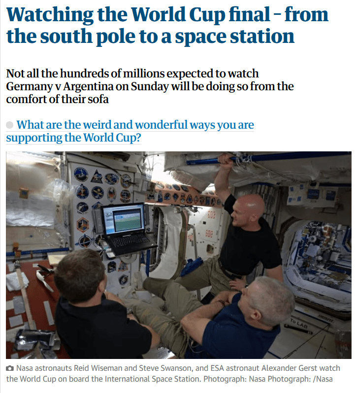Watching the World Cup final – from the south pole to a space station